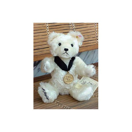 Dawn from the Walt Disney World Convention , representing "the dawn of a new millennium." It is made of white bouclé mohair, it wears a black ribbon around its neck with a millennium medallion.