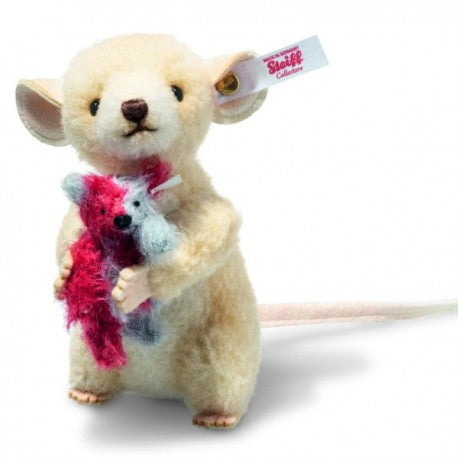 Lina est la 5ème de notre série de souris tenant leur ours en peluche Steiff préféré.
